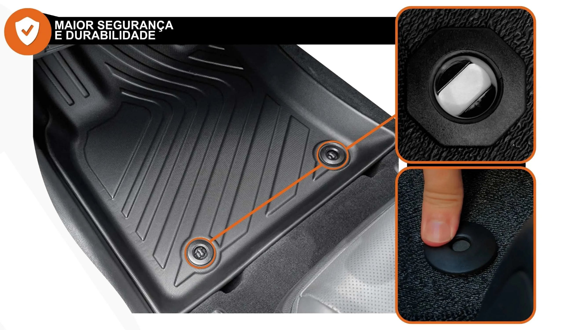 Tapete moldado que cobre toda a área do piso, protegendo cada canto do seu veículo.